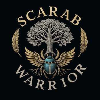 The Story of the Scarab Warrior: A Journey of TransformationThe scarab beetle, symbolizing transformation, begins its journey by rolling a ball of dung, turning something discarded into something fertile. However, as it focuses on its task, it discovers that it has wings and can fly, breaking free from the constraints of the earthbound work. This realization reflects the human experience: we often feel trapped in repetitive cycles, but like the scarab, we possess untapped potential and the ability to rise above our challenges, embracing our higher purpose and the freedom to soar. The Scarab Warrior, through this journey, embodies the power of transformation, reminding us all that within us lies the strength to overcome the mundane and embrace our true power.